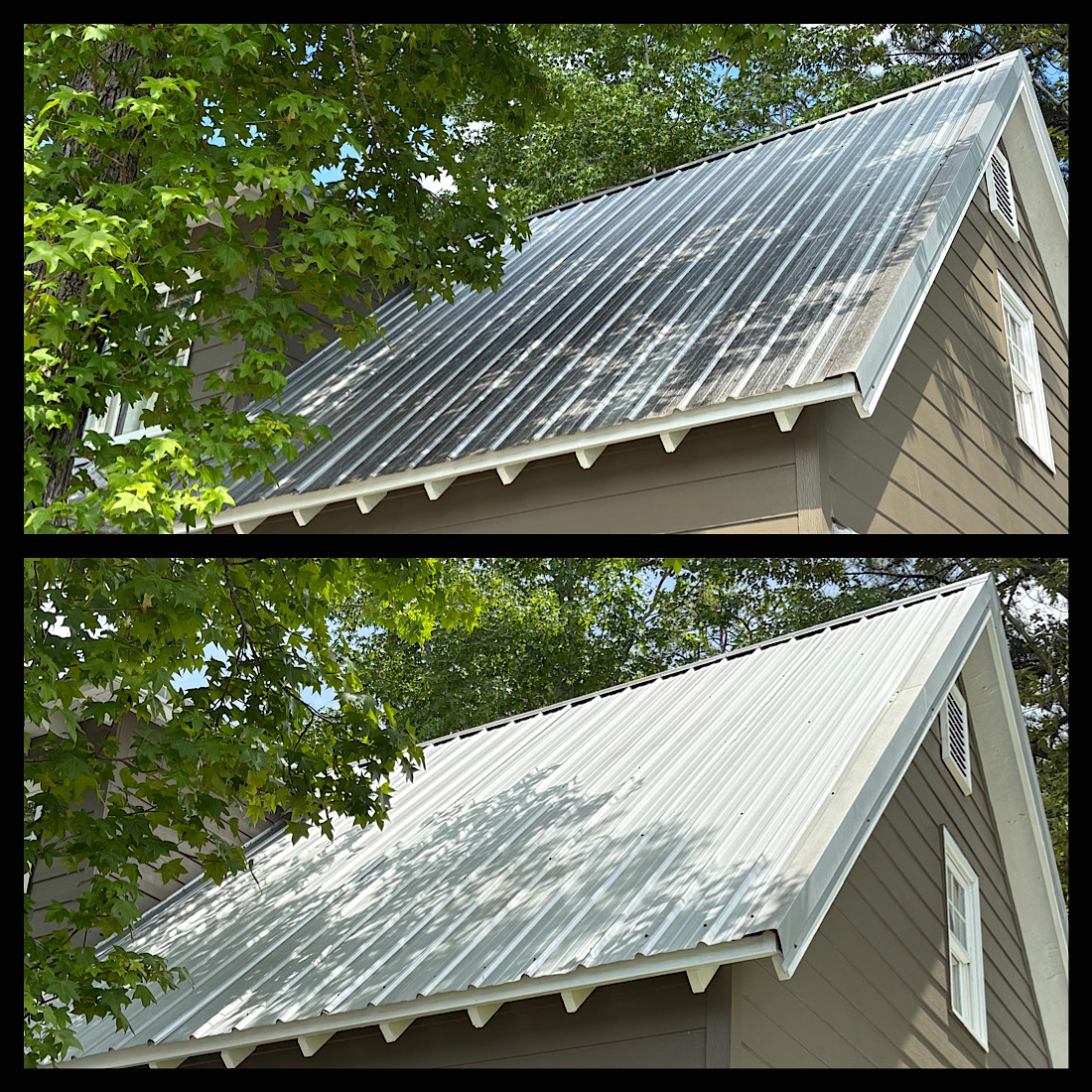 We apply a professional treatment that kills growth at the root and restores your roof’s appearance without high pressure.