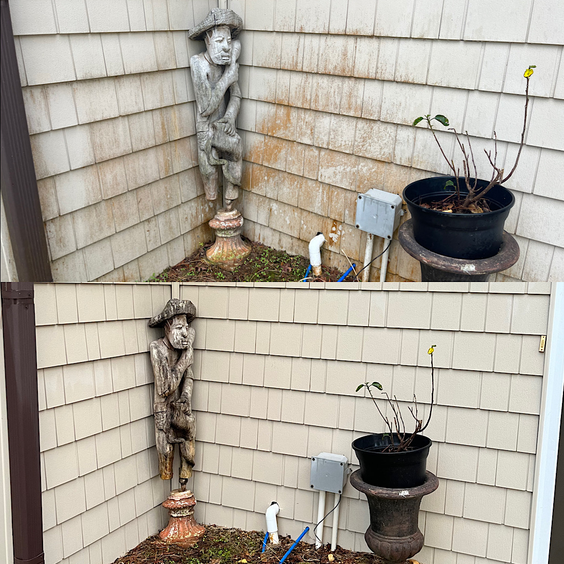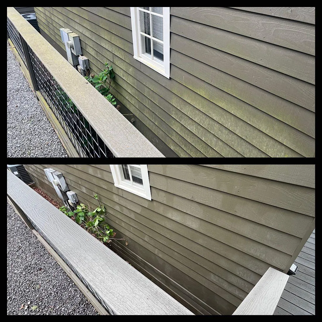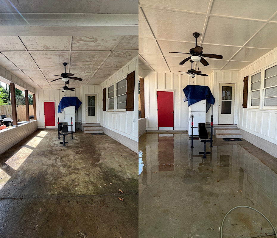 We use the right method for every surface — soft washing for siding and roofs, high pressure for concrete.